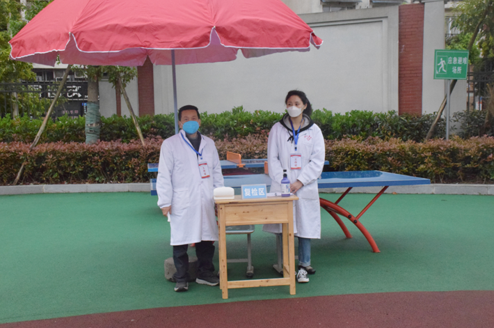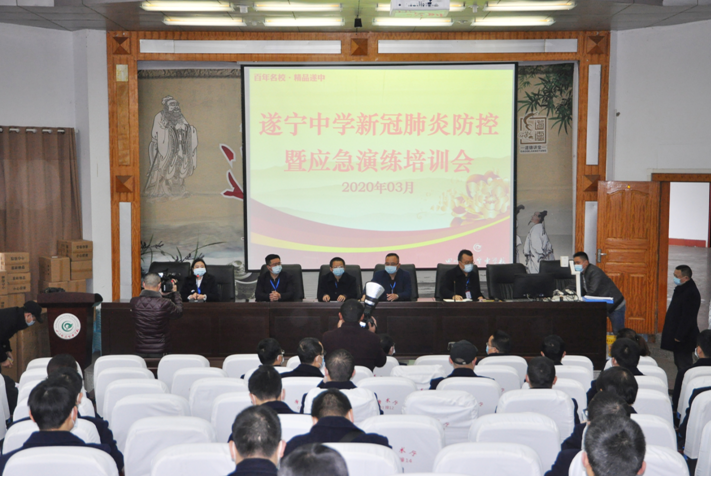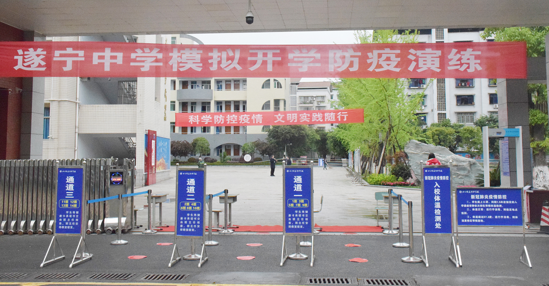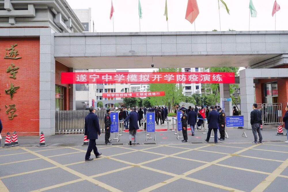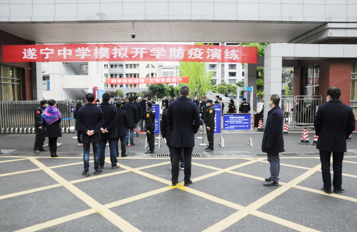 为打赢新冠肺炎疫情防控阻击战,落实和细化学校疫情防控应急预案和开学工作实施方案,保障全校师生开学后身体健康和生命安全,3月29日,遂宁中学介福路校区组织开展学生开学复课入校暨新冠肺炎疫情防控应急处置演练活动,模拟了开学报到、上课、就餐、入寝等各个环节及突发应急事件处置的整个流程。遂宁中学党委书记、校长张东,遂宁中学党委委员、副校长、介福路校区负责人王凌,遂宁中学党委委员、副校长唐悦、柴文斌、徐华,遂宁中学副校长何亚杰等校领导,以及部分中层干部、年级管理、高中三个年级班主任及相关科室人员参与了此次活动。