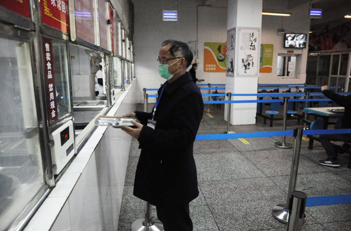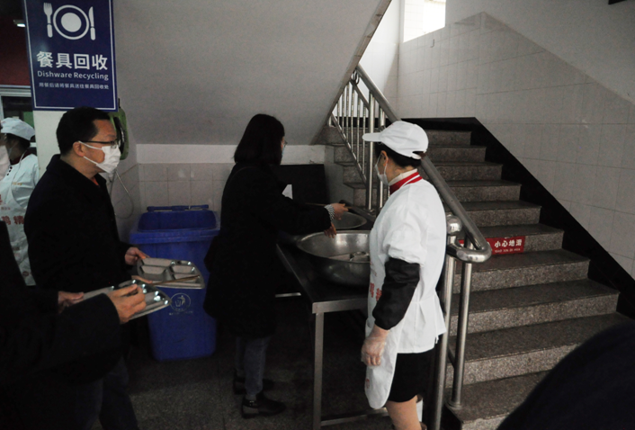 学校实行分时错峰就餐,放学后,学生们在老师的指导下,保持安全距离,按照路线错时、有序走向餐厅,走路不交流,路线不交叉。学生按照“七步洗手法”清洁双手并关好水龙头,清洁双手后请到食堂入口处按照班级制定通道排队接受体温检测,检测通过后才能进入食堂用餐。