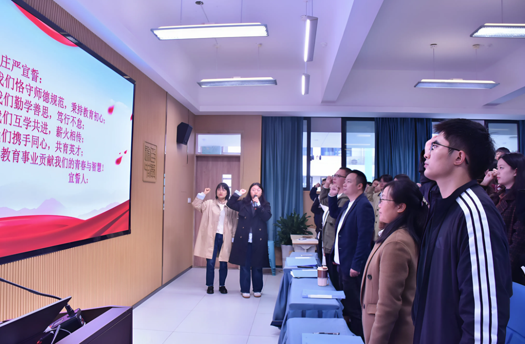 签约仪式结束后,全体结对师徒肃然起立,高举右拳,齐声宣誓:“我们恪守师德规范,秉持教育初心;我们勤学善思,笃行不怠;我们互学共进,薪火相传……”誓言铿锵,彰显了遂中教师坚守教育使命、共育时代新人的坚定信念。