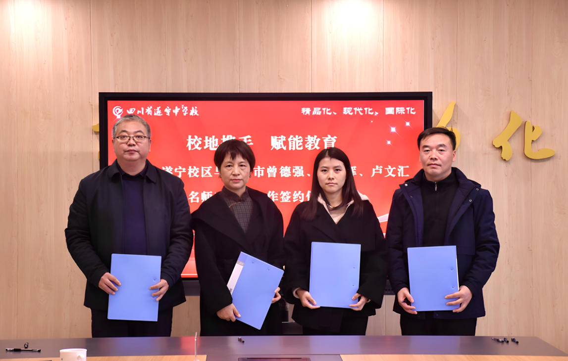 在与会人员的共同见证下,四川师范大学遂宁校区谭英副主任与三位名师工作室领衔人曾德强、杨小辉、卢文汇共同签署合作备忘录。此次合作是校地教育资源深度融合的一次重要探索,旨在共同推动教师专业成长与师范人才培养,积极响应遂宁市“教育强市”战略部署,助力遂宁中学“领航名校”建设。