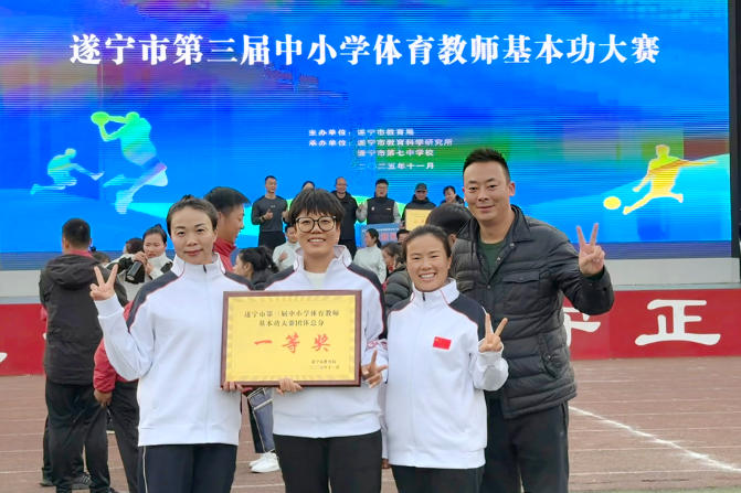 近日,遂宁市第三届中小学体育教师基本功大赛圆满落幕。遂宁中学体育教师们凭借扎实的专业功底与出色的综合素质,在比赛中表现优异。其中,张群、杨燕、龙丛容三位教师荣获个人项目一等奖,杨伍仟老师荣获二等奖。这一佳绩充分展现了遂宁中学体育教师队伍的专业素养与教学实力,也体现了学校长期坚持“五育并举”、全面推进素质教育的丰硕成果。