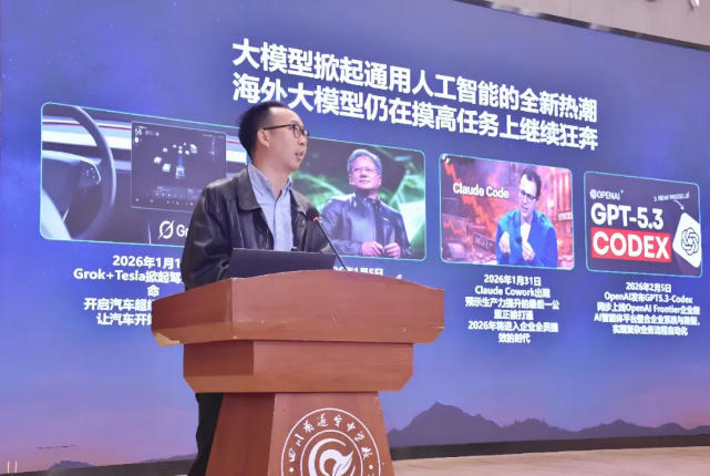 讲座中,陈云以《人工智能技术赋能教育高质量发展》为题,系统梳理了人工智能技术的发展脉络与应用前景。他从人工智能由运算智能向认知智能跃迁的技术演进入手,展示了语音识别、图像识别等技术在教育评估、教学诊断等场景中的深度应用。