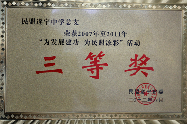 2012年6月民盟遂宁中学总支荣获2007年至2011年“为发展建功 为民盟添彩”活动三等奖