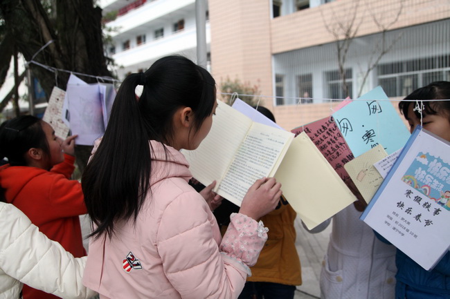 2016年3月9日,经过年级组与语文组精心筛选,近50本优秀作品脱颖而出,在校园内雷锋楼前展出。在这些作品中,同学们把春节家人团聚的快乐喜气,对生活的感悟,或成诗、或成文、或成画的方式精彩展现。体现了他们这个年龄阶段对这个世界独特的认知与感悟。