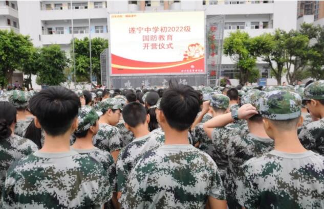 9月3日上午,遂宁中学举行了初2022级国防教育开营仪式,学校校级领导,初一年级管理组、班主任、全体教官以及800余名初一新生参加了仪式。