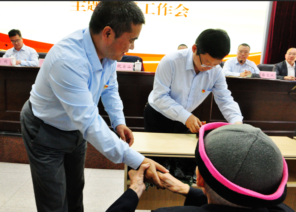 今年是中华人民共和国成立70周年,是个特殊之年。活动伊始,学校为离休干部狄啸老师代授中共中央、国务院、中央军委授予的“庆祝中华人民共和国成立70周年纪念章”,祝宗山副局长、张东校长将闪耀着光辉、象征着荣誉的勋章,送到了见证共和国诞生和发展奇迹,并为之奉献青春和力量的狄啸老师手里,向他表示祝贺,祝愿他身体安康,阖家欢乐。