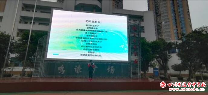 老师的爱,无私中透露着平凡:像一股暖流,渗入我们的心田;像一种呼唤,帮助我们落寞的心灵找到回家的路;像一阵春风,给我们温暖和温馨。老师是苗圃的园丁,让无数学子一批又一批成为参天大树,老师是一艘乘风破浪的船,船里总装着老师对学生的情和爱。您工作在今朝,却建设着祖国的明天;您教学在课堂,成就却在祖国的四面八方。老师,如果把您比作蚌,那么学生便是蚌里的砂粒;您用爱去舐它,磨它,浸它,洗它……经年累月,砂粒便成了一颗颗珍珠,光彩熠熠。本次德育活动在初2020级11班胡斌同学带来的《老师,我想你》歌声中结束!