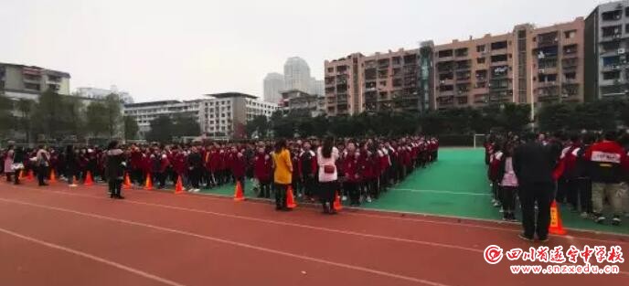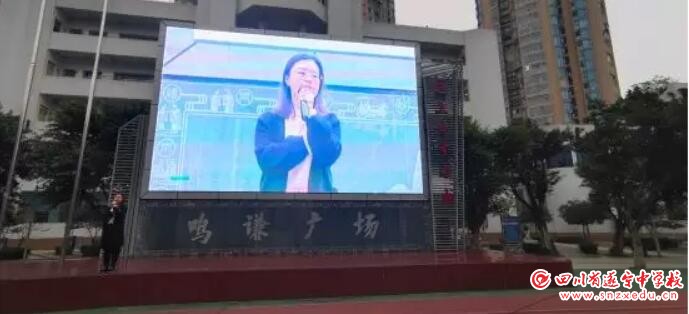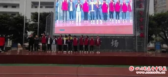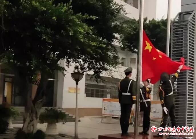 在壮丽的国歌声中,鲜艳的五星红旗冉冉升起在遂宁中学的校园上空。全校师生在年轻有为、美丽大方的徐洁老师的带领下庄严宣誓:“今天我为遂宁中学而骄傲;明天遂宁中学因我而自豪!”五星红旗迎风飘扬,优秀的遂中人将牢记誓词,奋勇前行。
