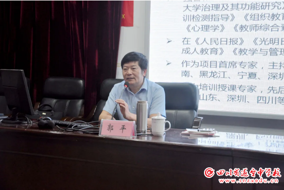 开班仪式结束后,全体学员认真聆听了中国成人教育协会教师继续教育专业委员会副理事长,成都师范学院教授、博士、博(硕)士生导师郭平主讲的《教师专业理念与师德》专题讲座。郭教授围绕教师专业理念与师德建设进行了深入浅出的讲解。郭教授表示,教师是人类灵魂的工程师,是人类文明的传承者,必须强化自身专业理念与师德素养,才能更好的承担让每个孩子健康成长、办好人民满意教育的重任。