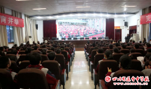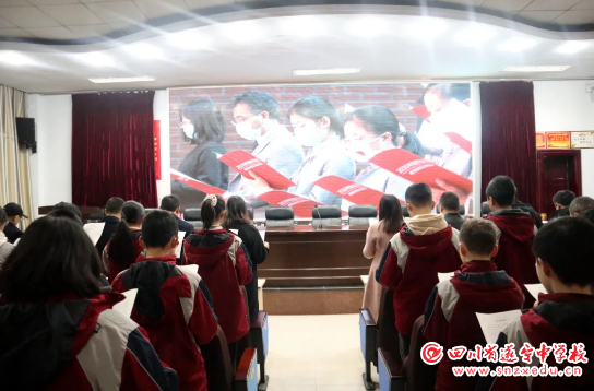 当天上午,市教育体育局四级调研员高均,市教育体育局法规科科长周航,市教育体育局法规科科室干部李建春,遂宁中学团委书记、教务处主任吴丽君,体卫艺术处主任严飞,总务处主任黄礼国,以及初中各年级管理组负责人和近200名师生代表参加了活动。大会由吴丽君主任主持。