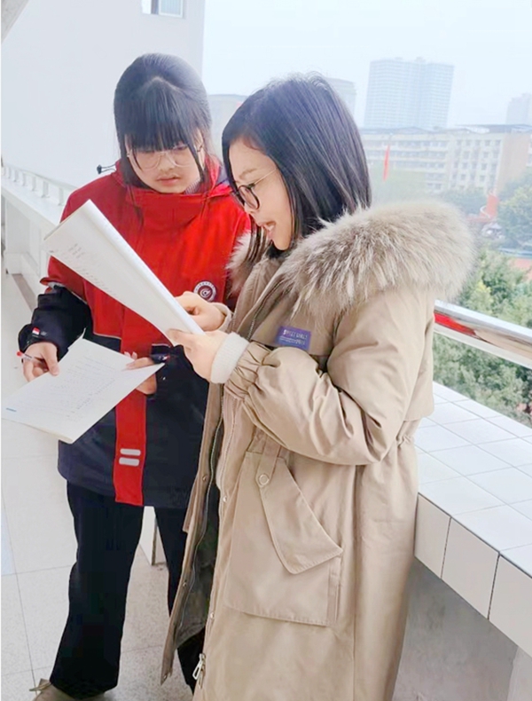 在课堂上,如果发现有同学趴在课桌上,她会轻轻地走到他身边,摸摸他的头,用善意的语言提醒他,并关心地询问他的身体状况。当发现有同学学习成绩下降时,她会立即找其了解原因,共同寻找解决的办法。
