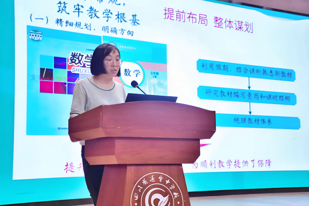 在经验分享环节,地理教研组组长谢璞穗老师以“教研为基、教学为本,领航示范,团结传承”为核心,详细介绍了地理学科在教研探索方面的实践与成果。她重点分享了该组通过扎实的集体备课、深入的课题研究及校本课程开发,实现教学质量与教研能力“双提升”的具体路径。数学教研组副组长敖年会老师则聚焦教学常规夯实与教研形态创新,介绍了数学组在强化集体备课、推行“推门听课”制度、组织外出学习等方面的有益尝试。此外,他还重点分享了小组合作学习模式、“讲题小先生”培养等特色做法,体现了数学组在提升学生综合素养和教师多元发展方面的深入探索。