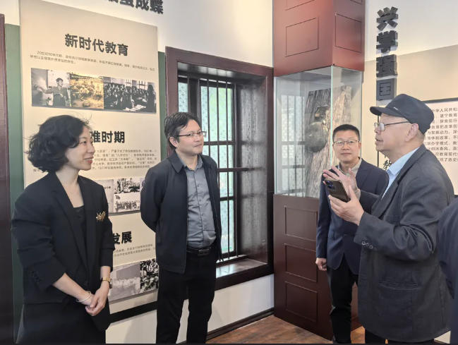 胡军一行首先走进遂宁中学育才校区,参观校史馆与遂学博物馆,开启了一段跨越时空的“寻根之旅”。在泛黄的史料照片、珍贵的实物档案与厚重的文史资料前,两校长达百年的同源脉络与守望相助的办学情谊清晰浮现。参观过程中,双方均感慨虽历经世纪风雨,两校在教育报国的初心与育人情怀上始终“心意相通”。