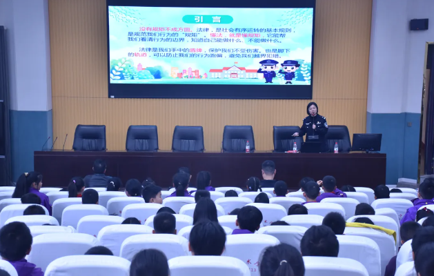3月5日下午,遂宁中学介福校区开展了以“法治进校园,护航筑安全”为主题的学生法治安全教育讲座。遂宁市公安局刑侦支队一大队大队长汪洋,市公安局刑侦支队一级警长、遂宁中学法制辅导员唐彬等出席活动。本次讲座由遂宁市公安局船山分局龙凤派出所教导员、2024及2025年度“童卫四川”全省优秀公益宣讲师何玲担任主讲,为小学三、五、六年级全体师生带来了一堂深刻且实用的法治教育课。