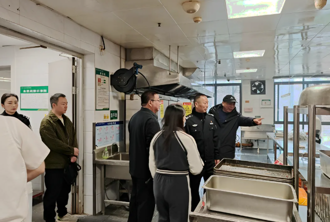 联合检查组重点查看了校门防冲撞设施、监控设备运行情况;在教学楼,抽查了灭火器有效期及应急灯功能;在学生寝室,检查了应急疏散通道标识是否完整;在食堂,对食材采购、加工流程、留样记录进行细致核验,并现场检测餐具消毒效果;在操场,检查了体育器材的稳固性。各部门各司其职,形成“问题联治、工作联动”的协同机制。