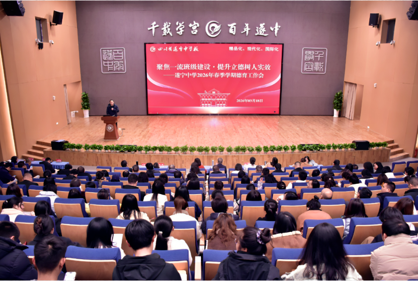本次德育工作会直面班务管理中的实际问题,探寻立德树人的育人路径,充分展现了遂宁中学德育工作者迎难而上、守正创新的精神风貌。站在“领航名校”建设的新起点上,全体遂中人将以此次会议为契机,把共识转化为行动,把难点转化为亮点,以一流班级建设撬动学校整体育人品质的提升,用扎实的德育实践书写“为党育人、为国育才”的遂中答卷。