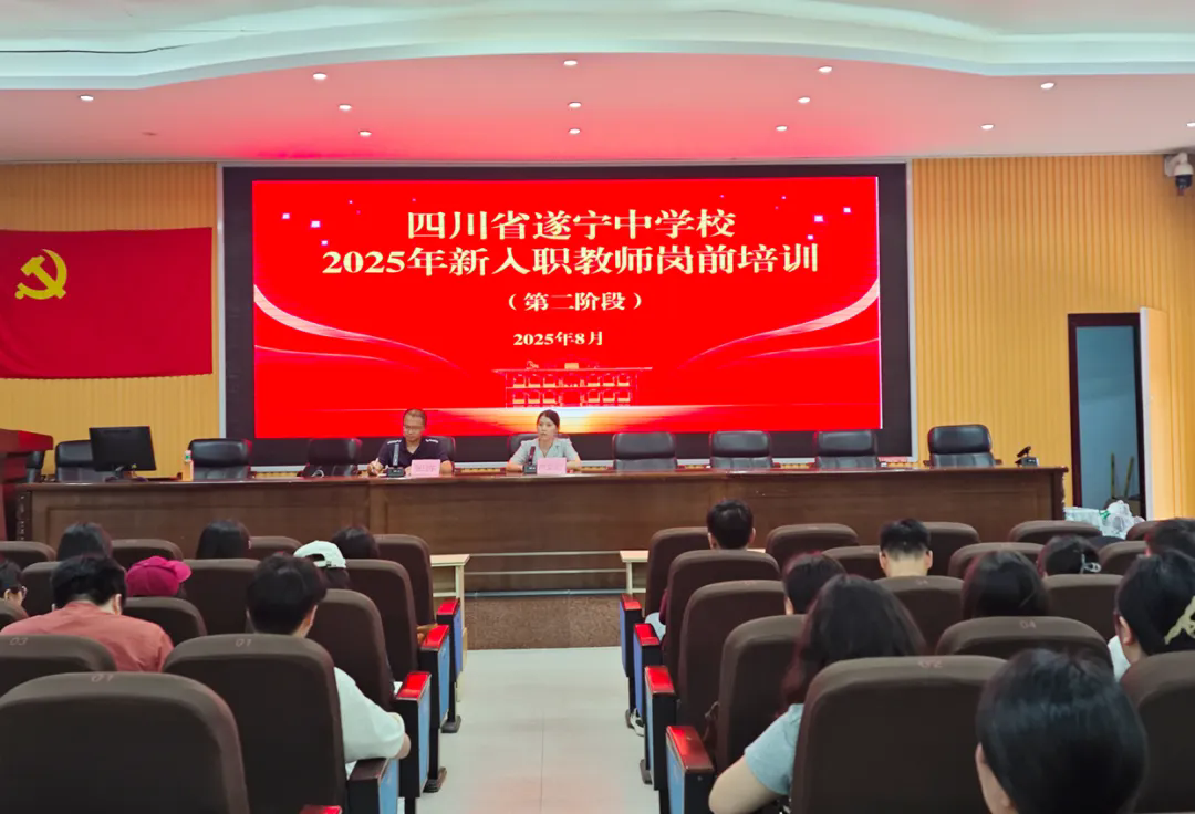 8月23日至25日,遂宁中学2025年新入职教师岗前培训(第二阶段)圆满收官。本次培训以“强化素养、赋能课堂、传承匠心”为主线,通过专题讲座、实操训练及结班仪式等多维环节,助力新入职教师筑牢教育根基、明确职业方向、坚定育人使命。