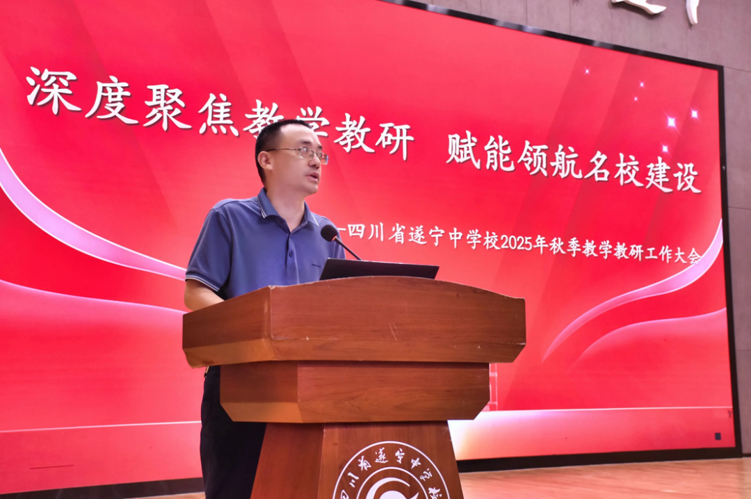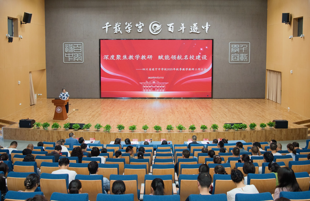 9月17日,遂宁中学召开2025年秋季教学教研工作会,全面部署新学期教学教研工作,扎实推进“领航名校工程”建设,全力推动学校教育教学质量迈上新台阶。学校党委书记张东、校长何亚杰等校领导出席会议,各年级管理组成员、教研组长、学科带头人及备课组长等共同参会。
