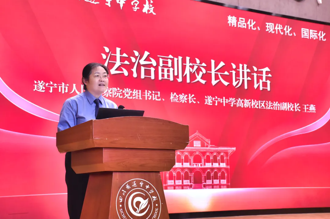 10月15日下午,遂宁中学在高新校区鸣谦学术交流中心举行2025年秋季学期德育工作会。本次会议以"聚焦德育路径·提升育人实效"为主题,旨在加强班主任队伍建设,进一步提升班主任的德育素养和管理水平。遂宁市人民检察院党组书记、检察长、遂宁中学高新校区法治副校长王燕,遂宁市人民检察院党组副书记、副检察长、遂宁中学介福校区法治副校长王海志,遂宁市人民检察院党组成员、副检察长李虹志,以及遂宁中学党委书记张东、校长何亚杰等领导出席会议,学校全体班主任和近三年新进教师参会。