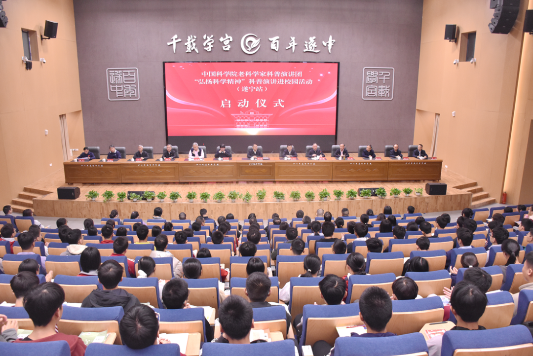 为弘扬科学家精神,激发青少年科学兴趣与创新梦想,10月27日,2025年中国科学院老科学家科普演讲团“弘扬科学精神”科普演讲进校园(遂宁站)启动仪式在遂宁中学高新校区举行。中国科学院学部工作局一级巡视员、科普团长周德进,市委常委、组织部部长、市关工委主任宋良勇出席仪式并讲话,市关工委执行主任蒋海斌主持启动仪式。