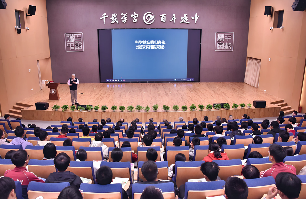 讲座现场启动仪式后,中国科学院老科学家科普演讲团成员、博士生导师、中国科学院地球物理研究所高温高压地球动力学开放实验室原主任白武明为遂宁中学师生作了题为《地球内部探秘》的首场科普讲座。