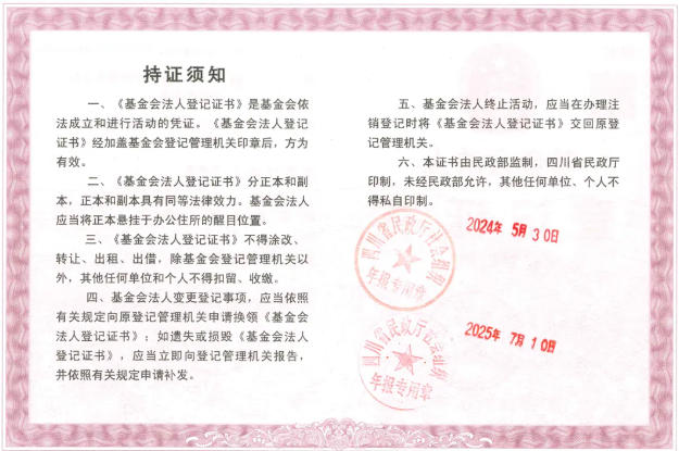 2025年7月,基金会顺利通过省民政厅组织的年度检查,并迎接了省级专家的实地考察,获得积极评价。同年,基金会参加了“四川省2025年社会组织等级评估”工作。